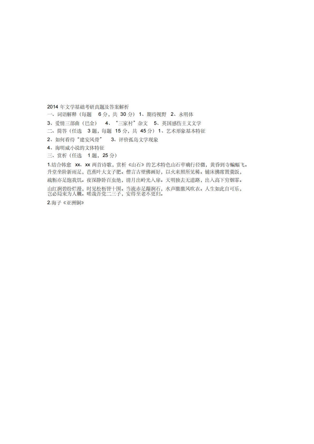 南开大学713文学基础2014年真题