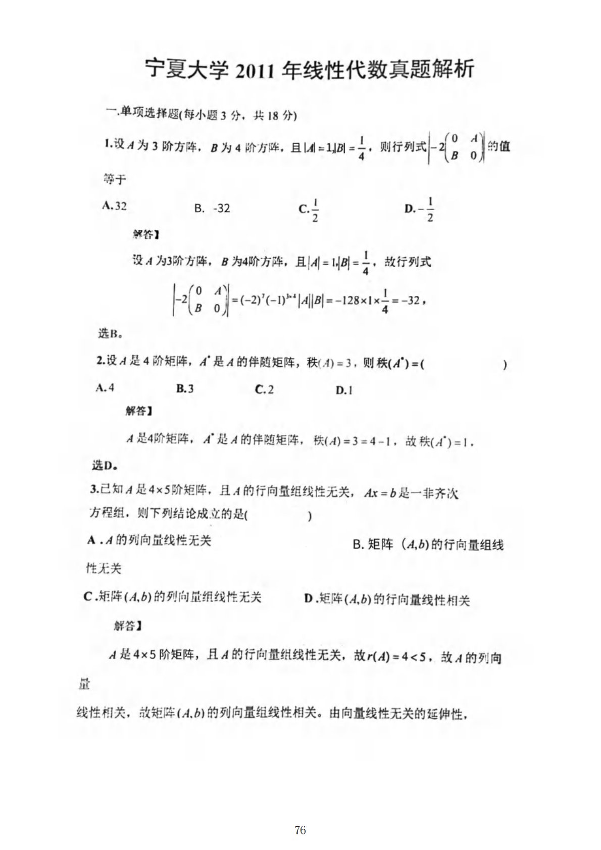 宁夏大学816高等代数2011年真题答案