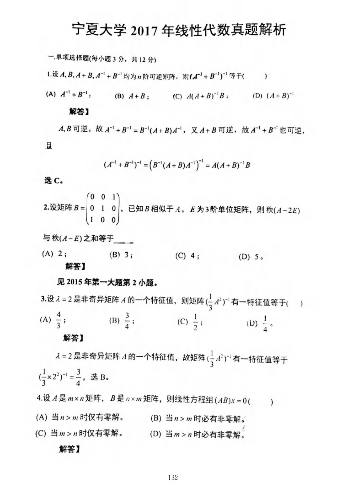 宁夏大学816高等代数2017年真题答案