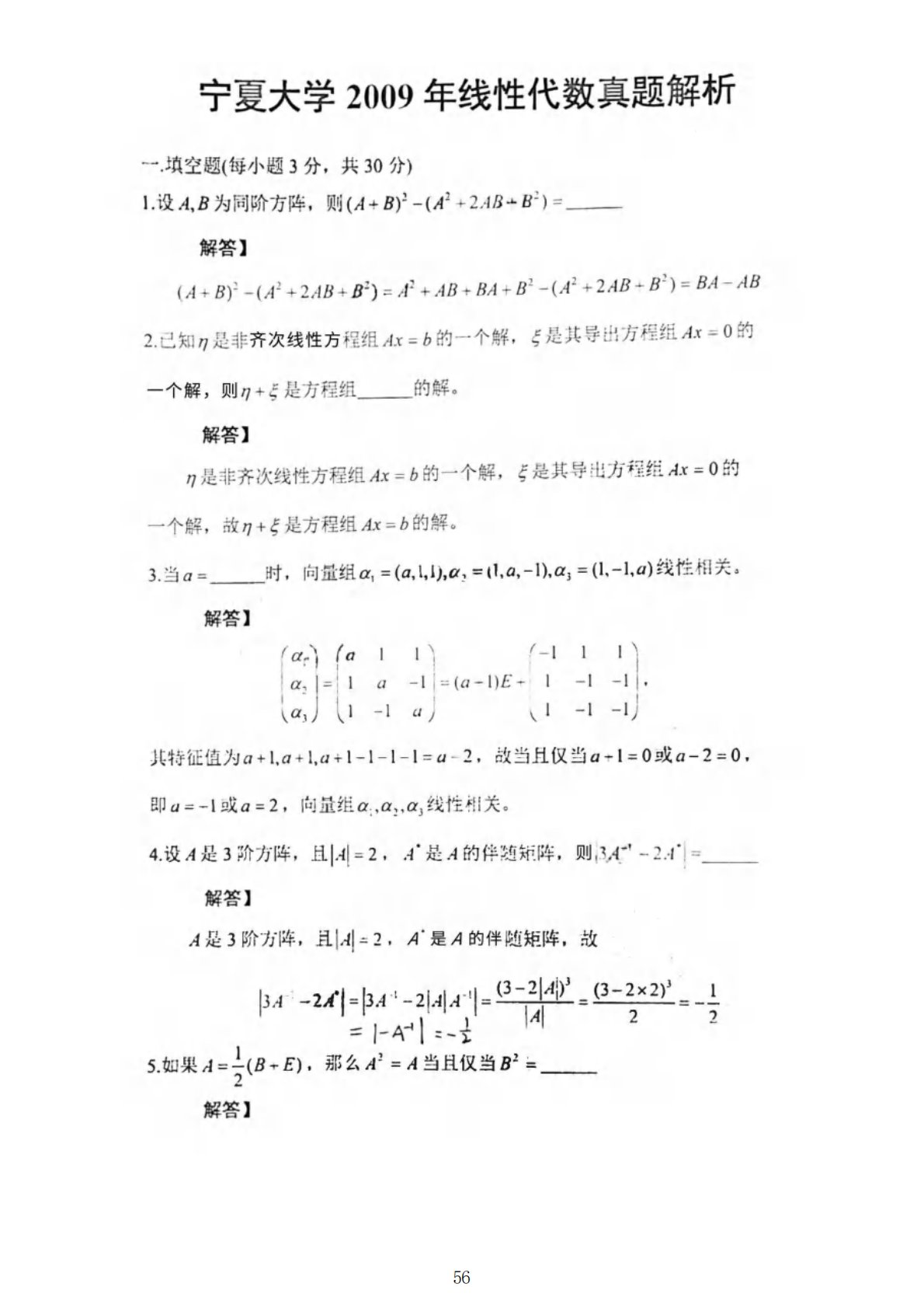 宁夏大学816高等代数2009年真题答案