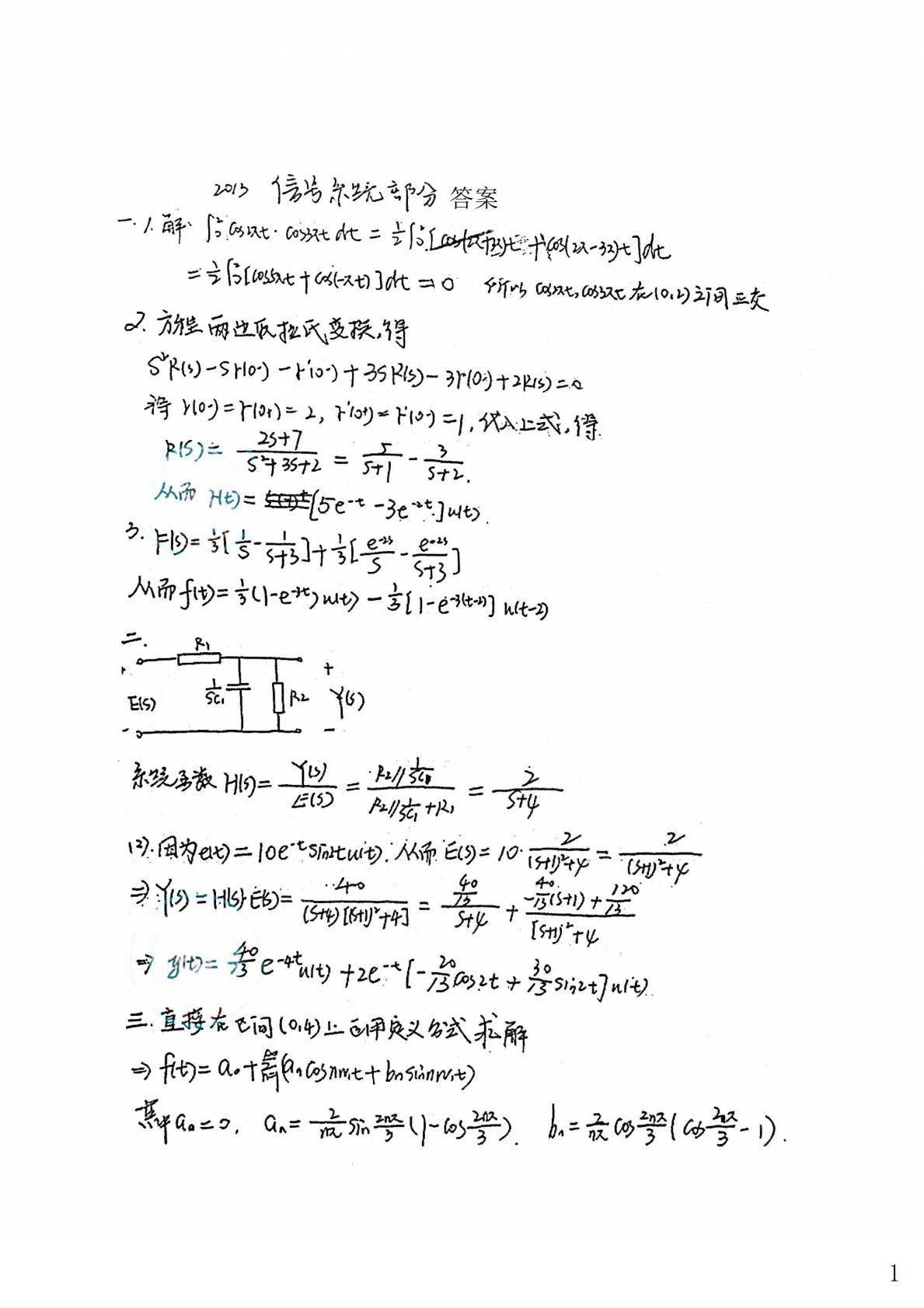 南京大学851信号与系统2013年真题答案