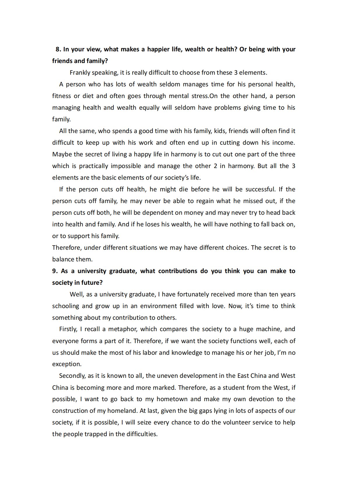 8.Inyourview,whatmakesahappierlife,wealthorhealth?Orbeingwithyourfriendsandfamily?Franklyspeaking,itisreallydifficulttochoosefromthese3elements.Apersonwhohaslotsofwealthseldommanagestimeforhispersonalhealth,fitnessordietandoftengoesthroughmentalstress.Ontheotherhand,apersonmanaginghealthandwealthequ...