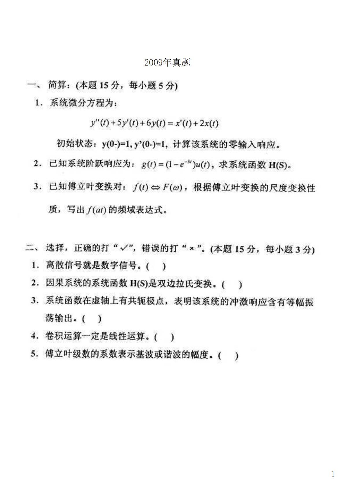 南京大学851信号与系统2009年真题