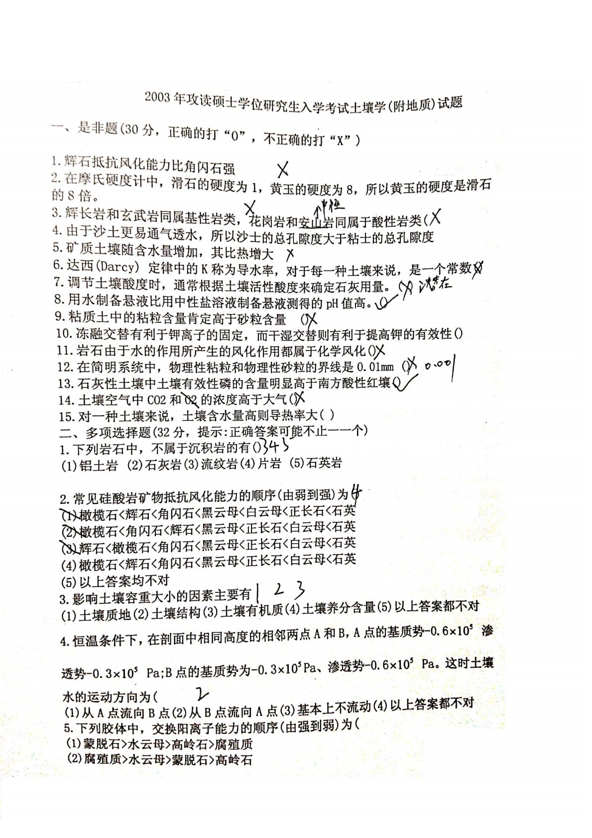南京林业大学345林业基础知识综合土壤学2003年真题