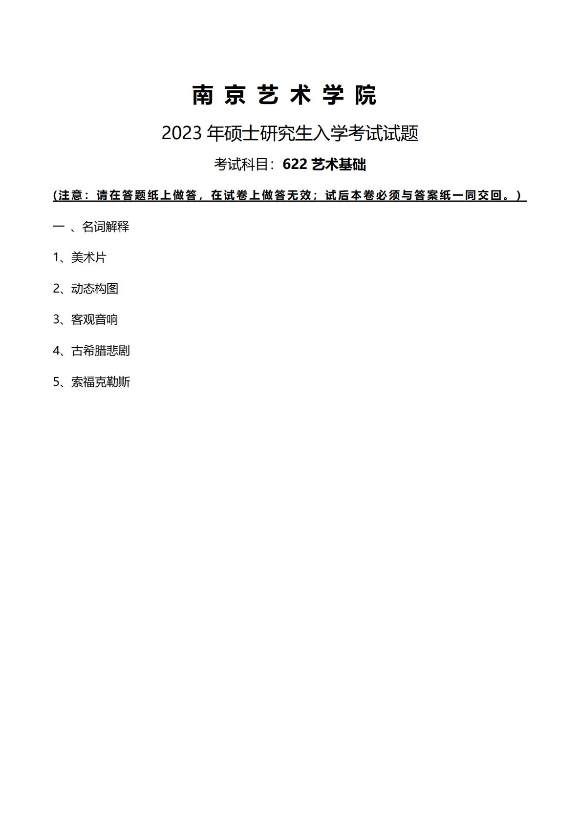 南京艺术学院622艺术基础(电影编、广播电视编、戏剧编)(专硕)2023年真题