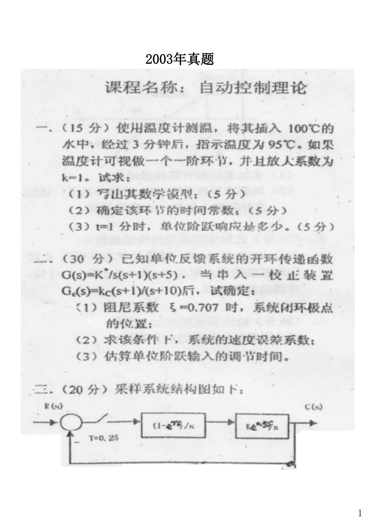 兰州理工大学835自动控制原理2003年真题