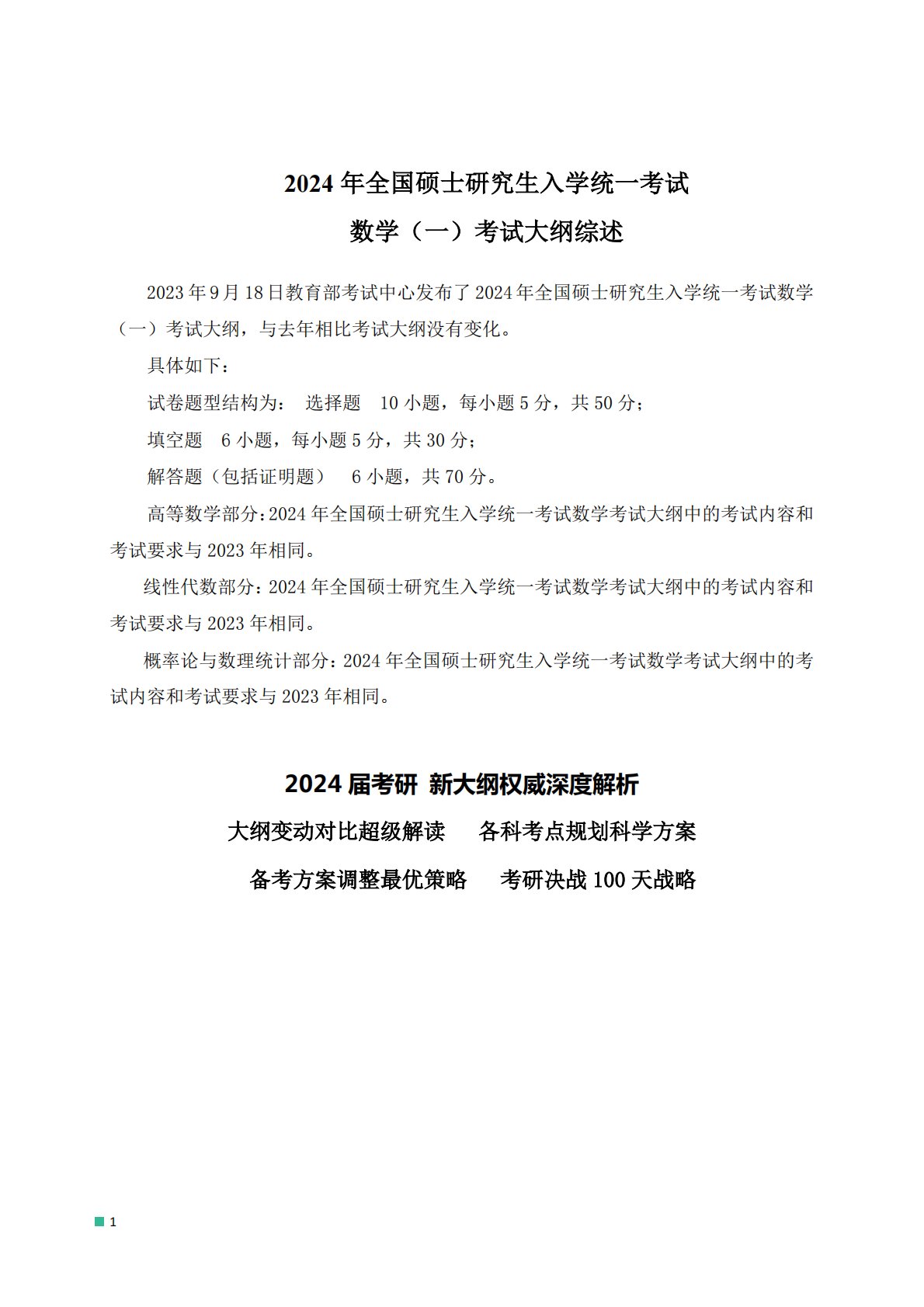 301数学一2024年考研数学考试大纲综述_数一