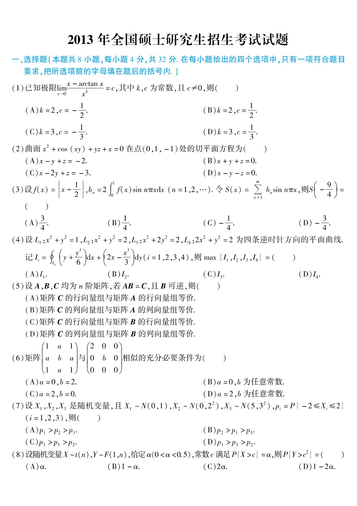 301数学一2013年考研初试真题