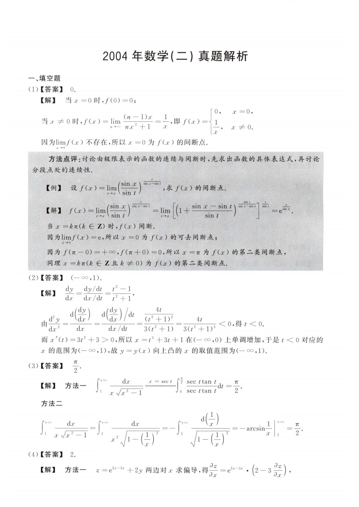 302数学二2004年考研初试真题解析