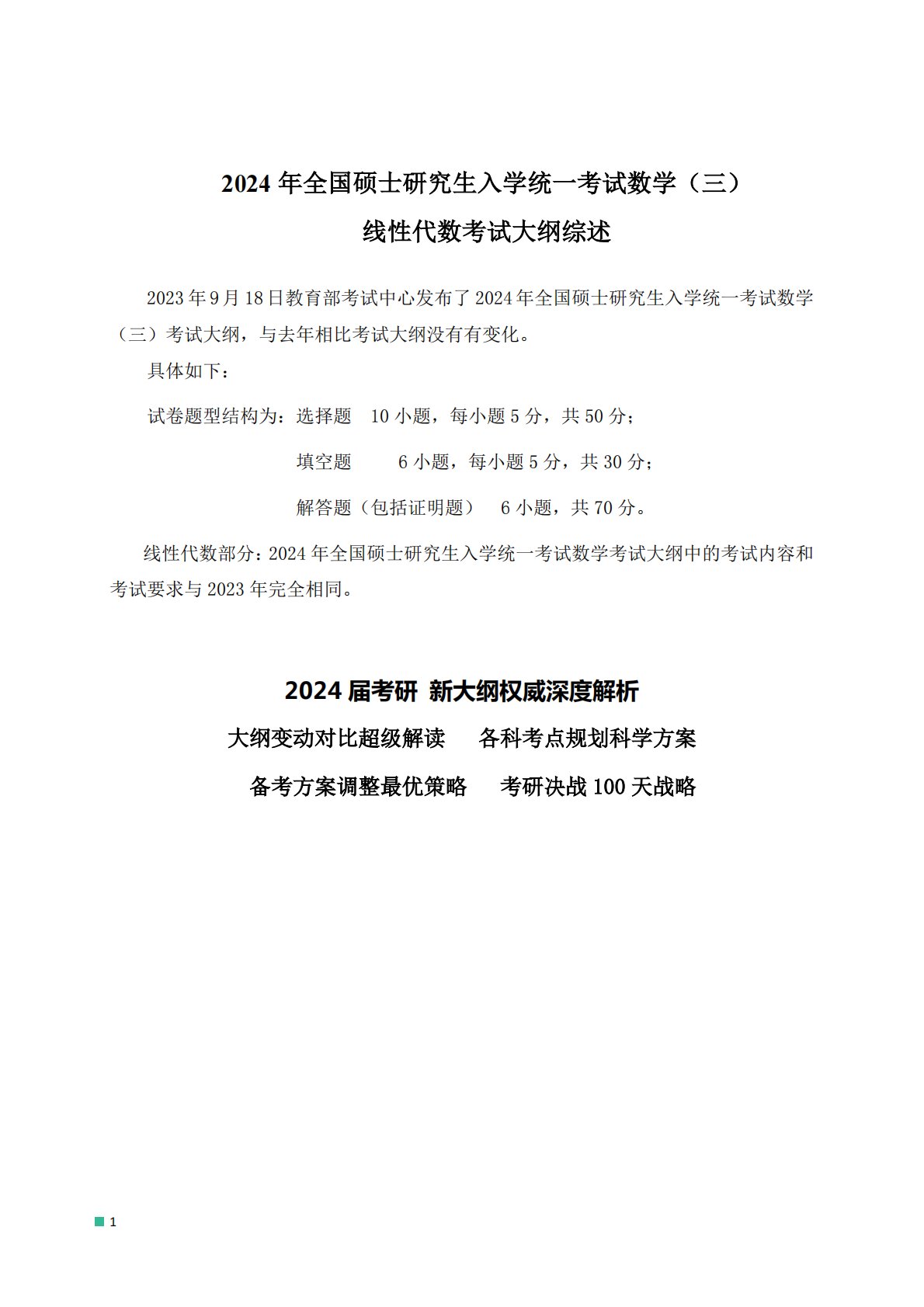 303数学三2024年考研线性代数考试大纲综述