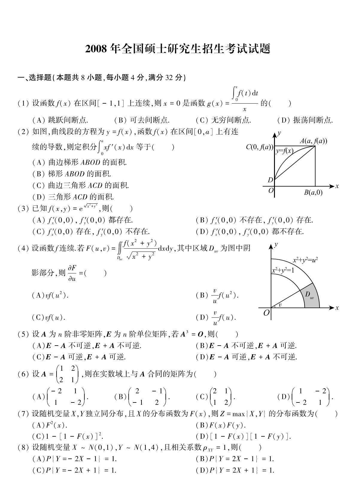 303数学三2008年考研初试真题