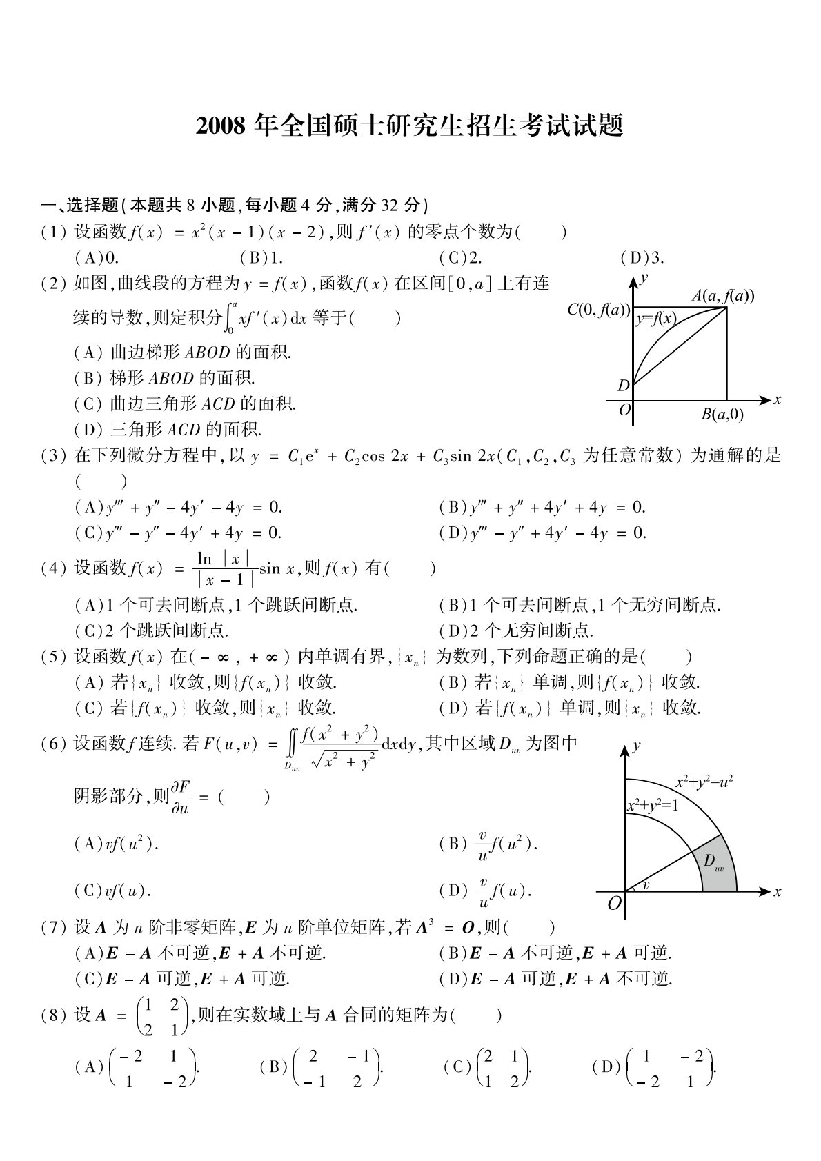 302数学二2008年考研初试真题