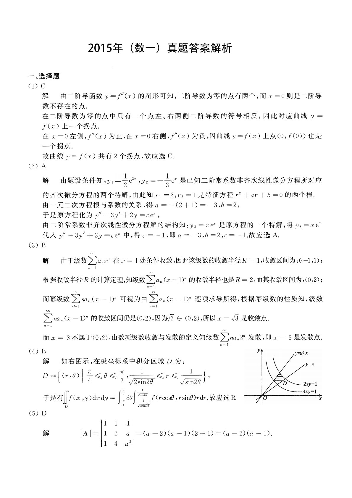 301数学一2015年考研初试真题参考答案