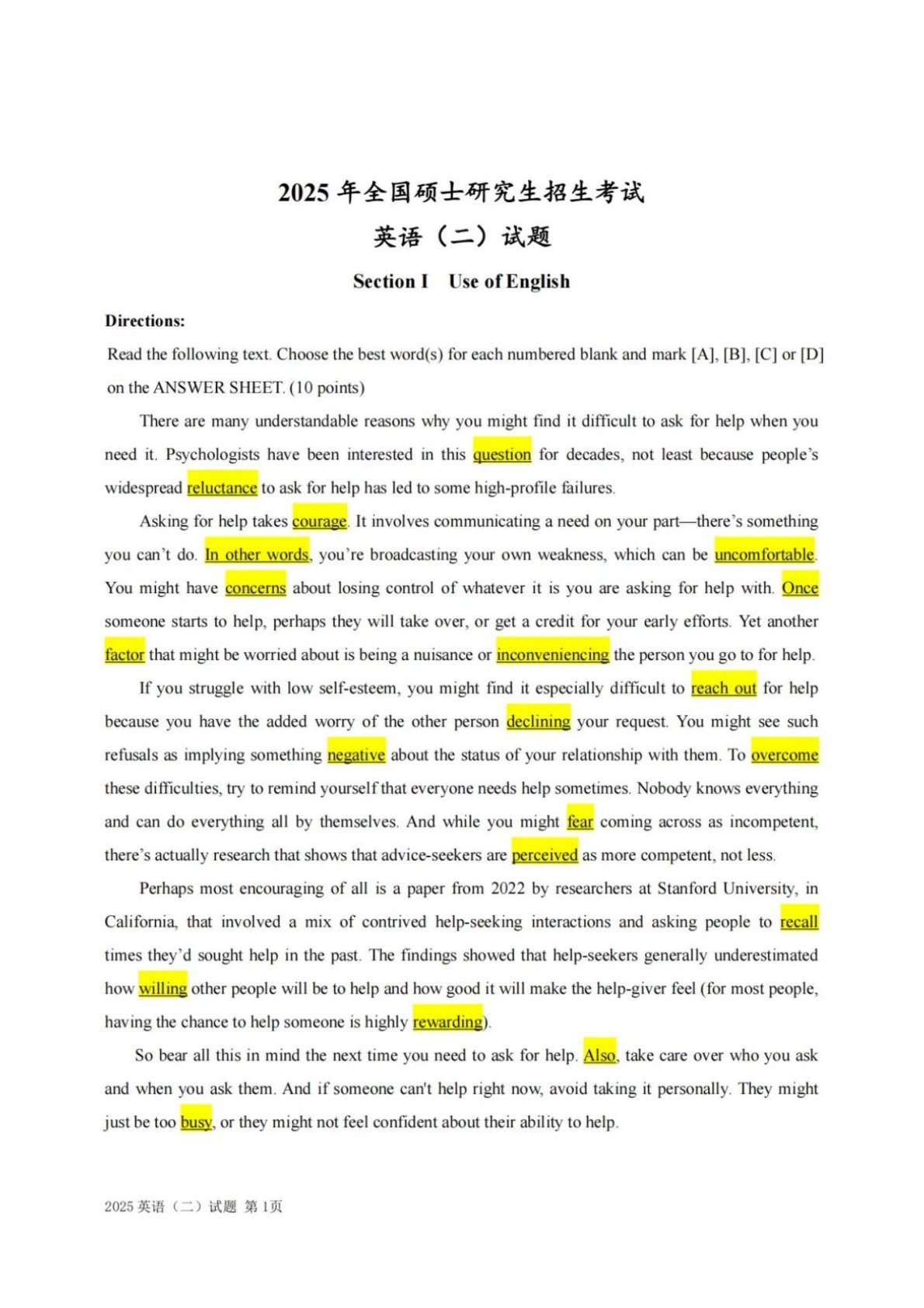 204英语二2025年真题及答案