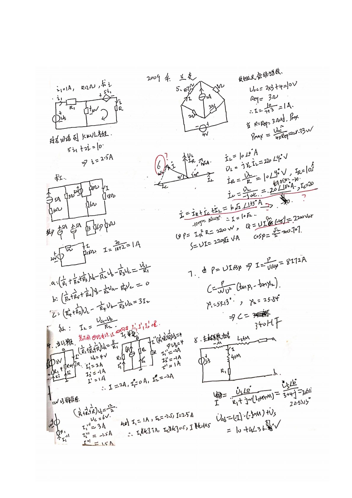 兰州交通大学814电路基础2009年真题答案手写版