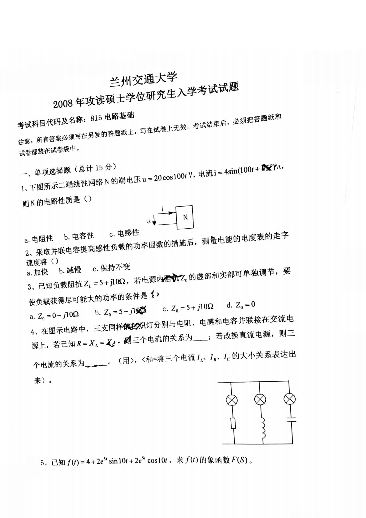 兰州交通大学814电路基础2008年真题