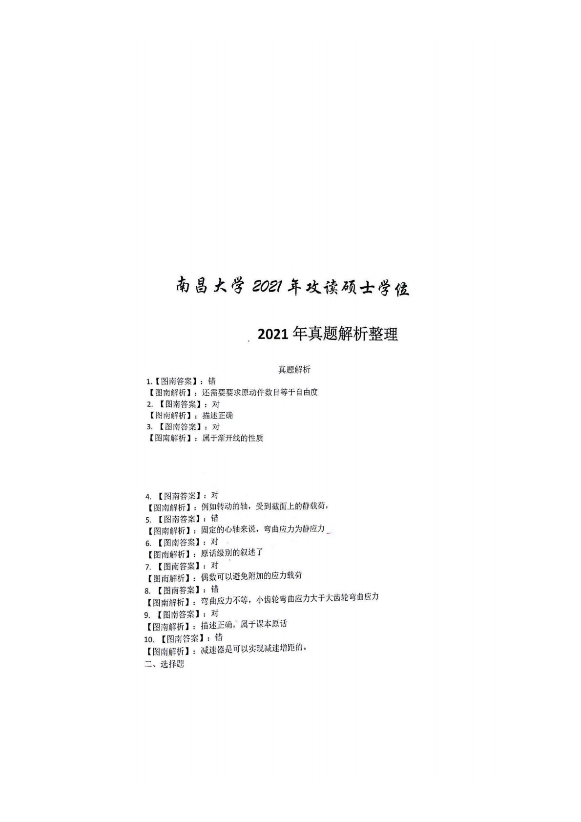南昌大学827机械设计基础2021年真题解析