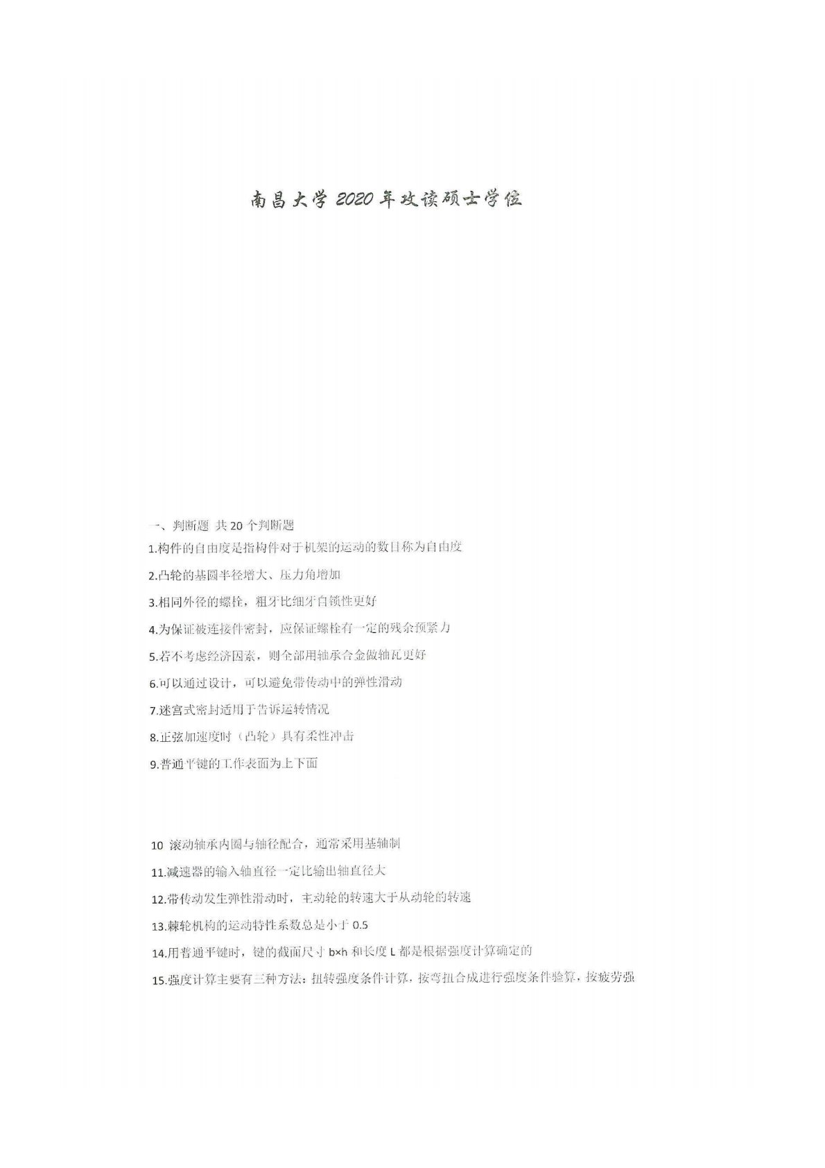 南昌大学827机械设计基础2020年真题