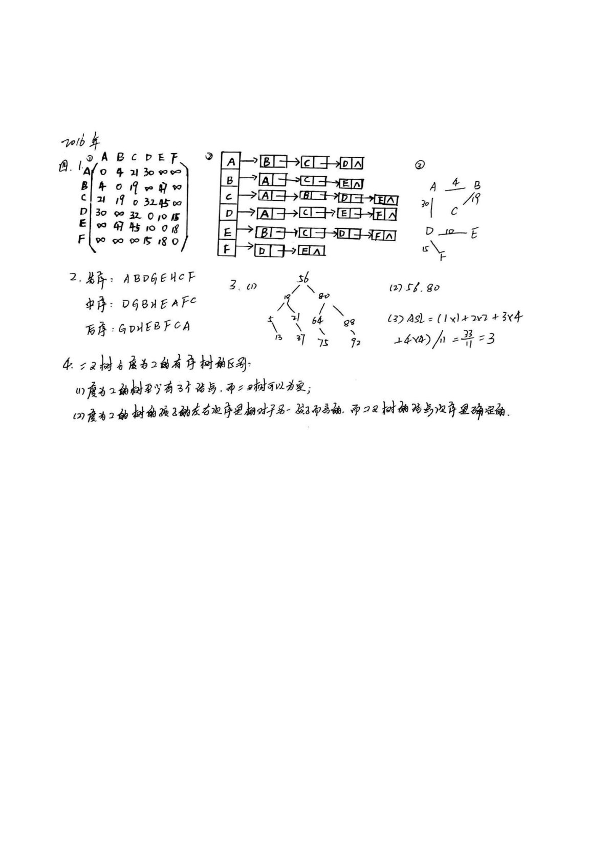 兰州交通大学828数据结构2016年真题答案手写版