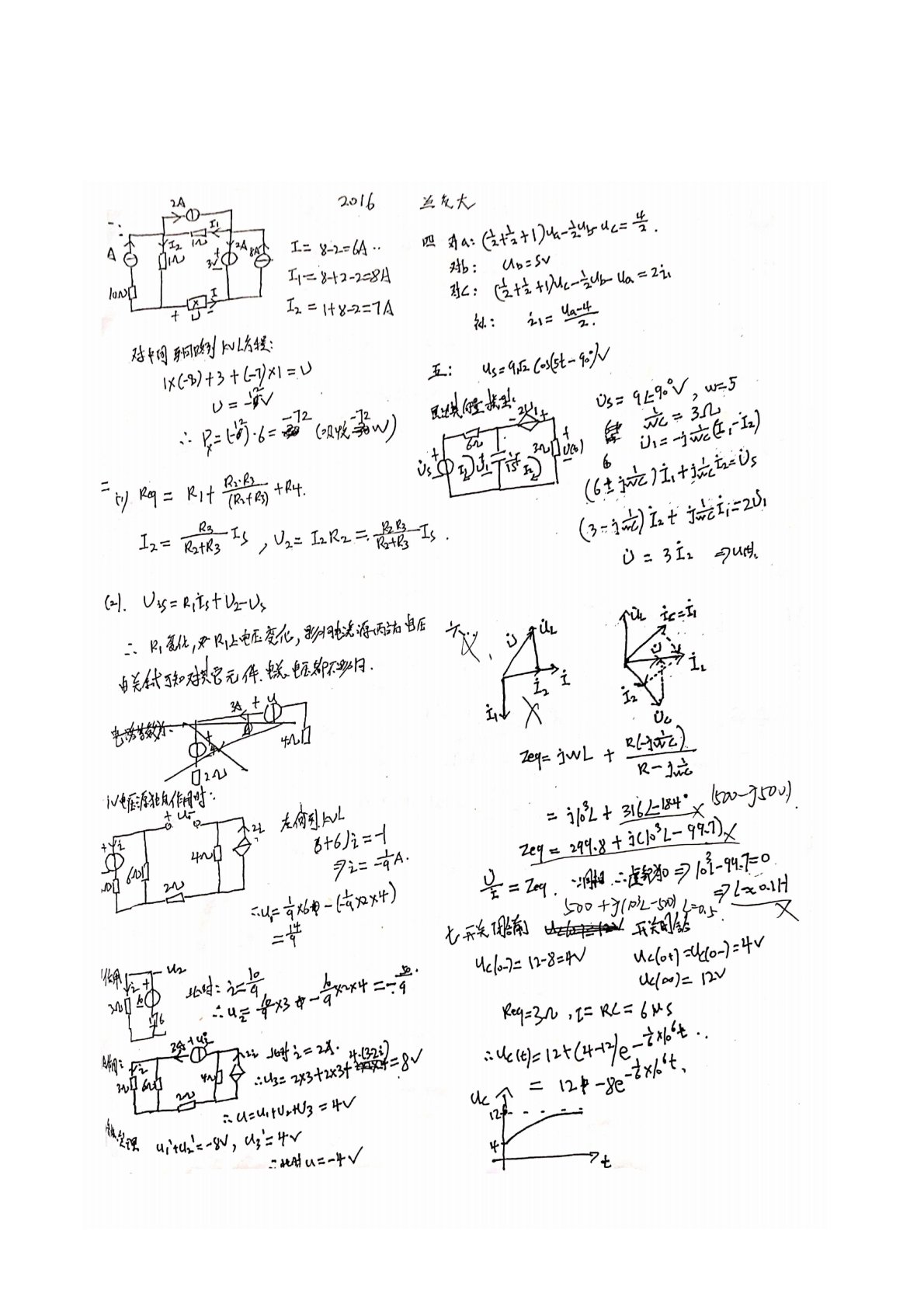 兰州交通大学814电路基础2016年真题答案手写版