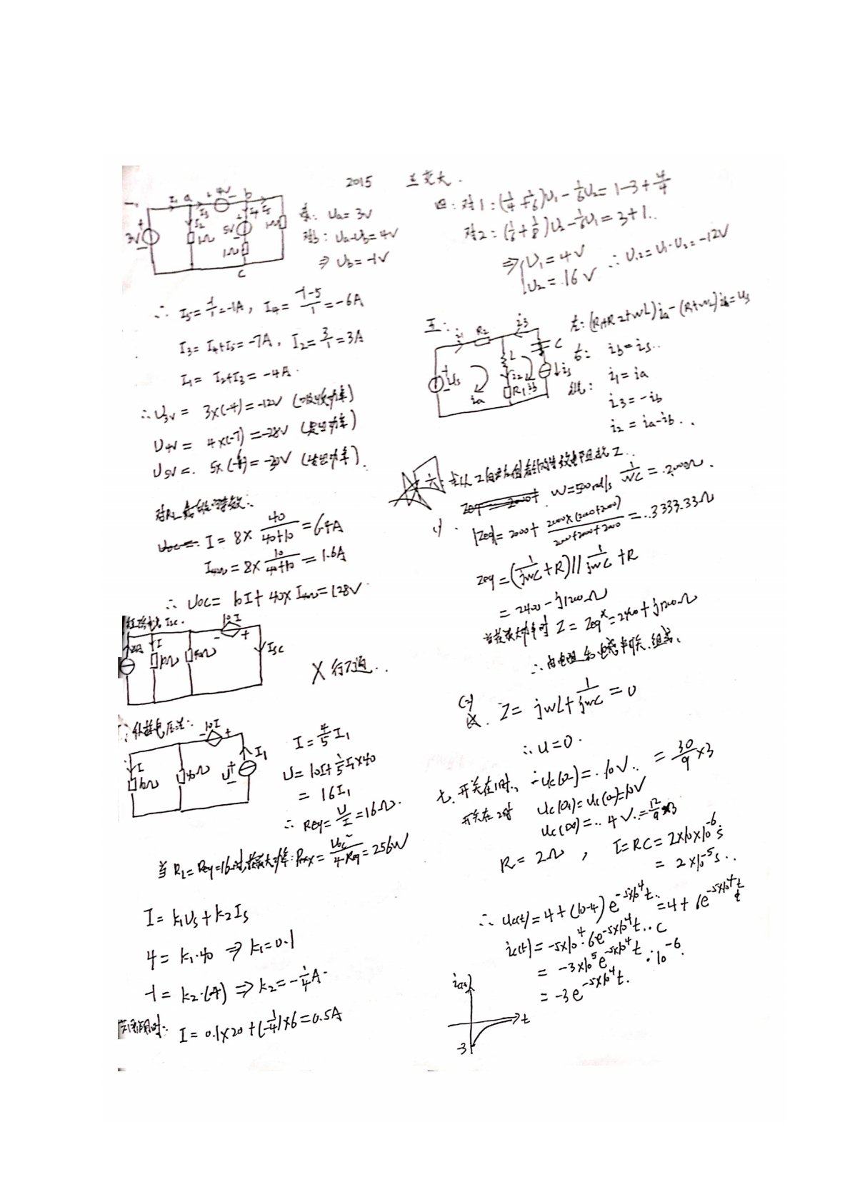 兰州交通大学814电路基础2015年真题答案手写版