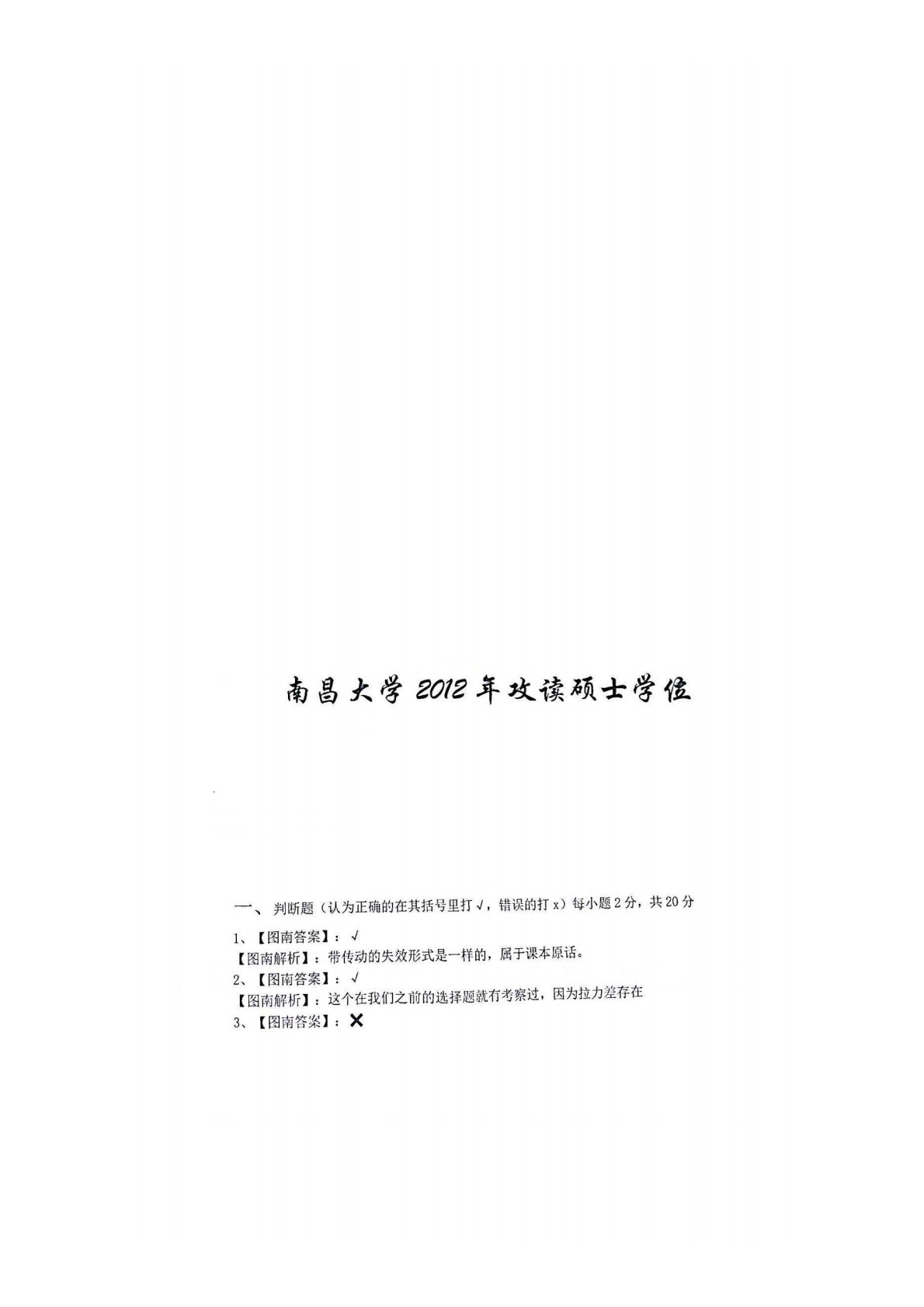南昌大学827机械设计基础2012年真题解析