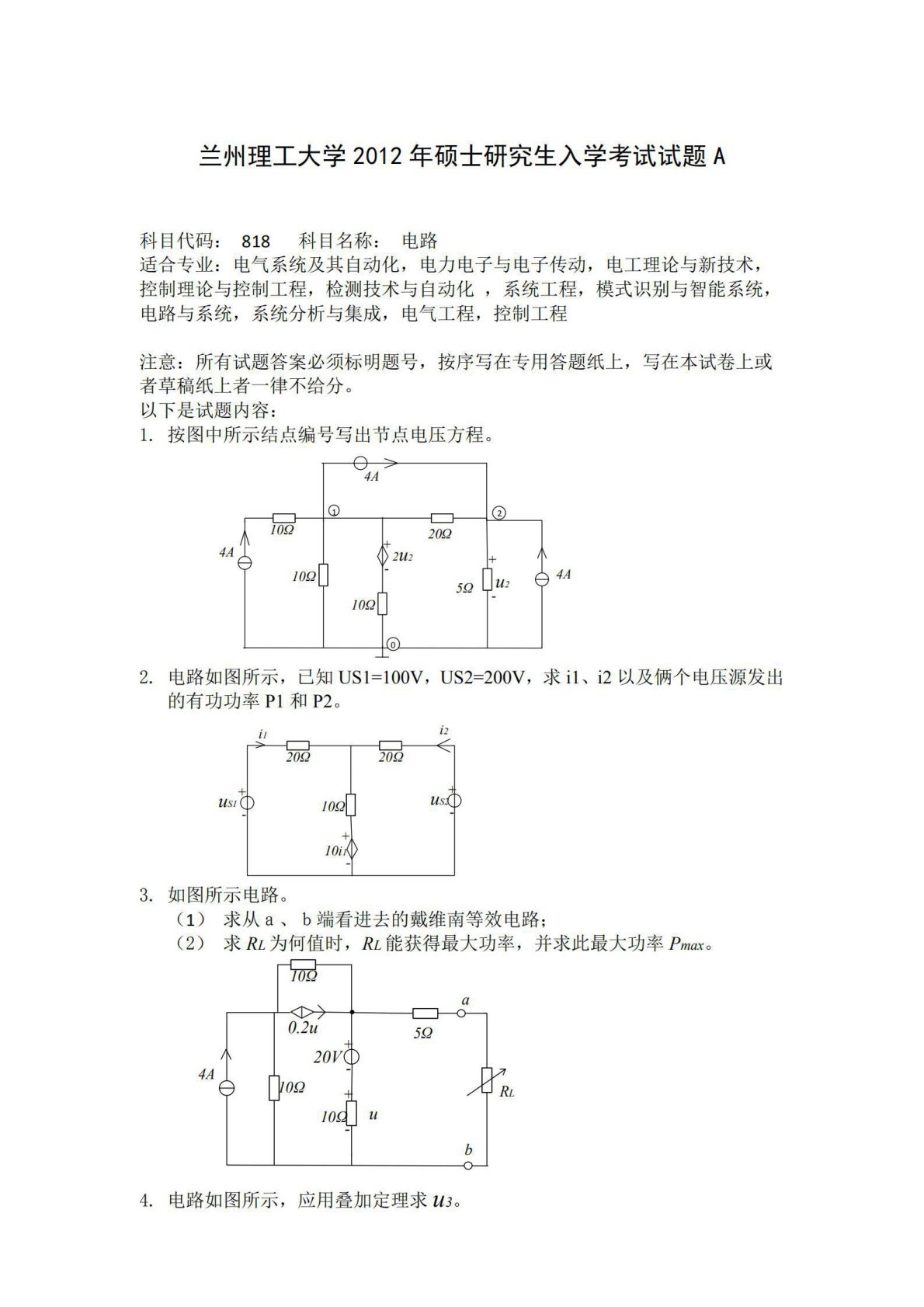 兰州理工大学818电路2012年真题
