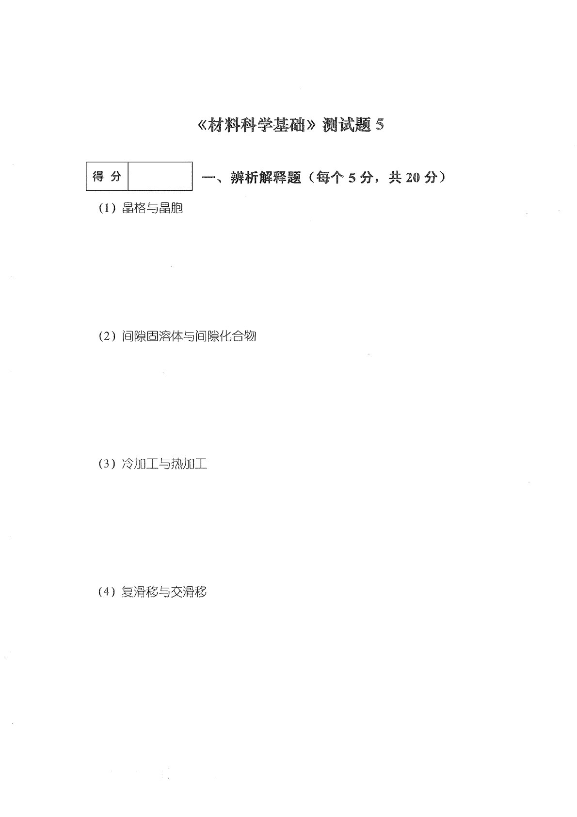 兰州理工大学801材料科学基础测试题5