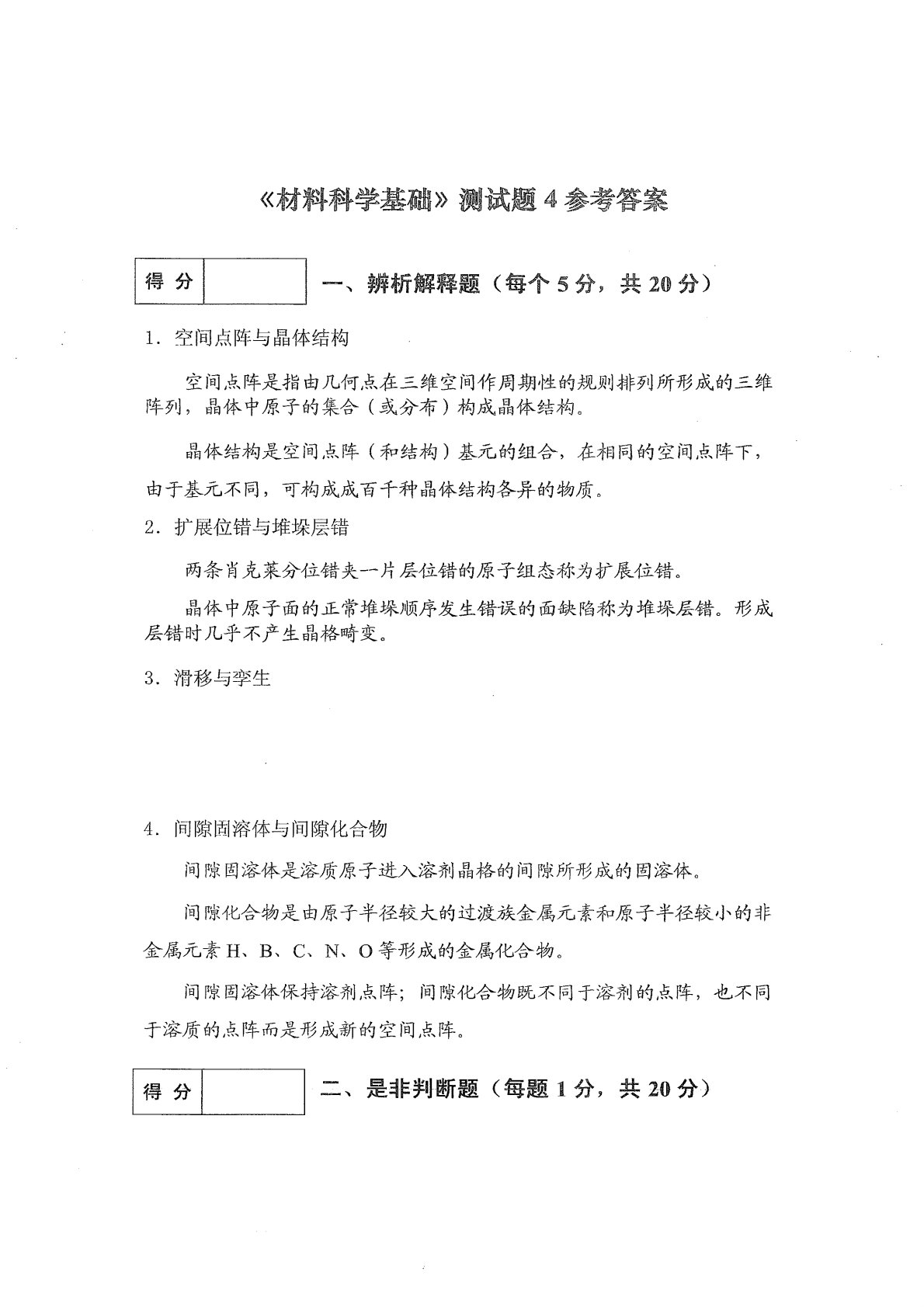 兰州理工大学801材料科学基础测试题4答案