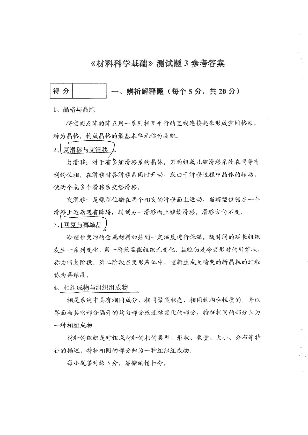 兰州理工大学801材料科学基础测试题3答案