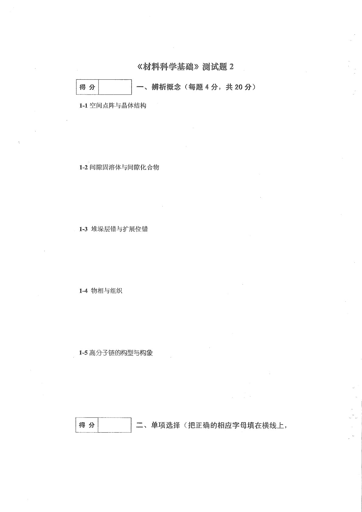 兰州理工大学801材料科学基础测试题2