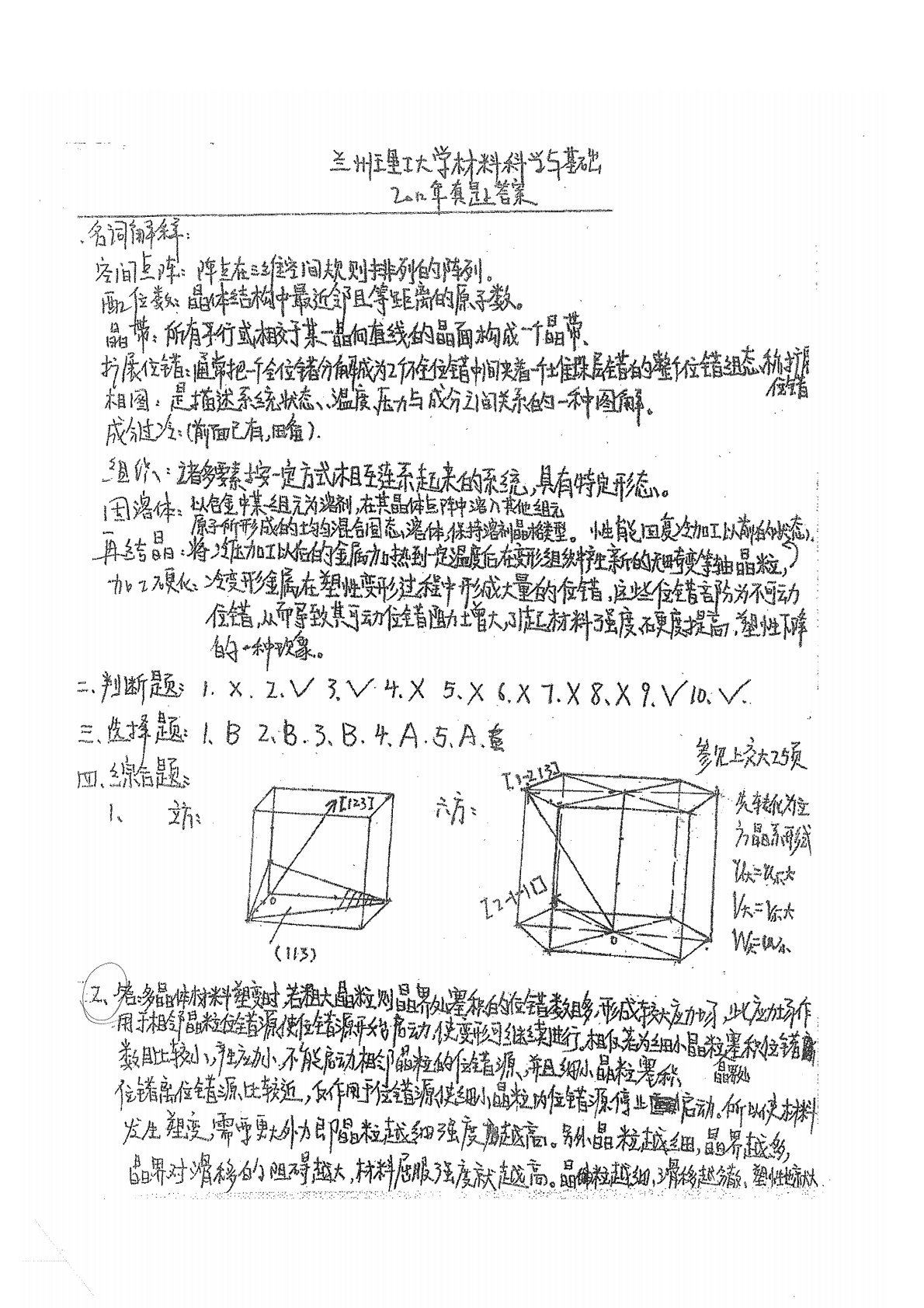 兰州理工大学801材料科学基础2012年真题答案手写版