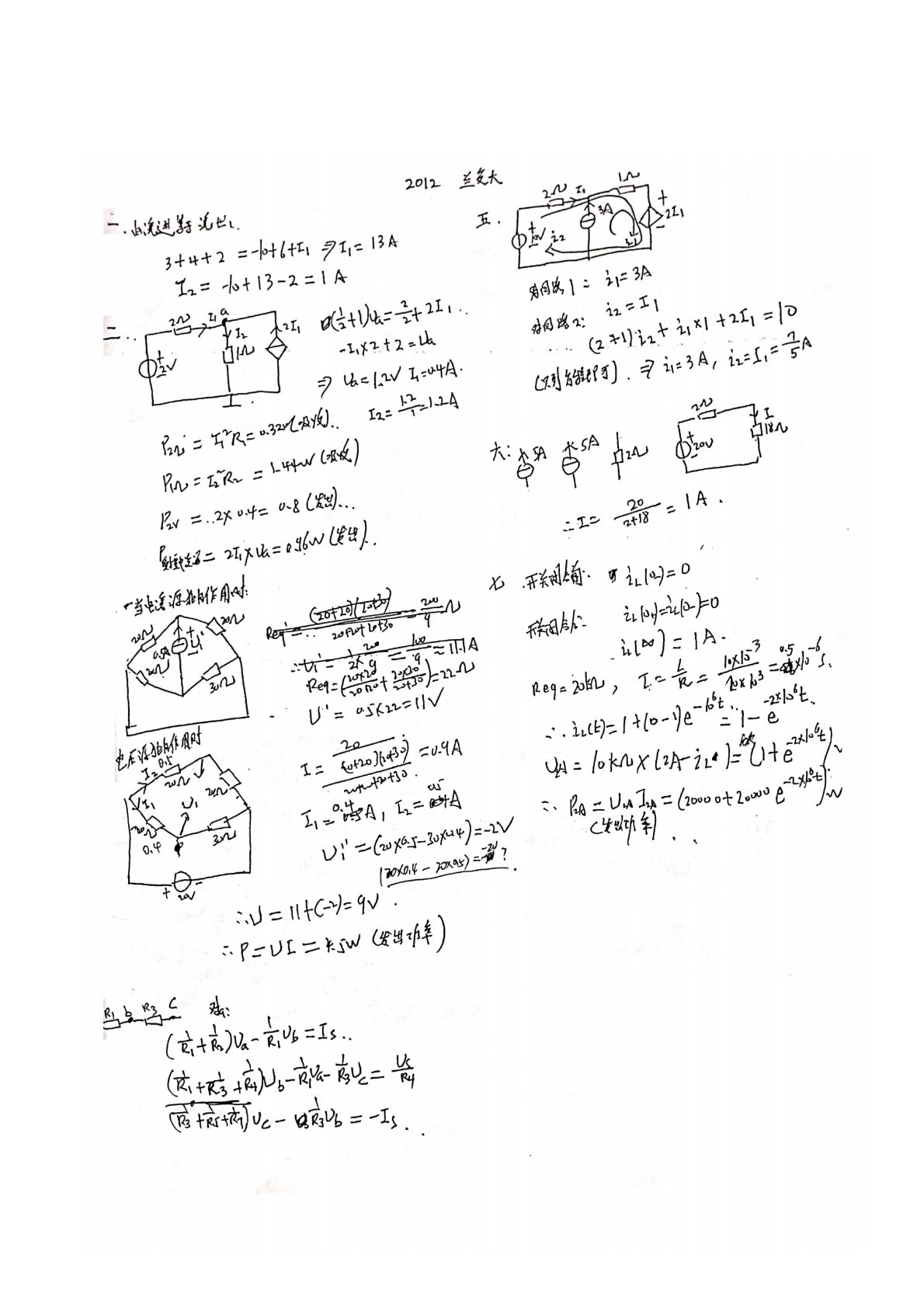 兰州交通大学814电路基础2012年真题答案手写版