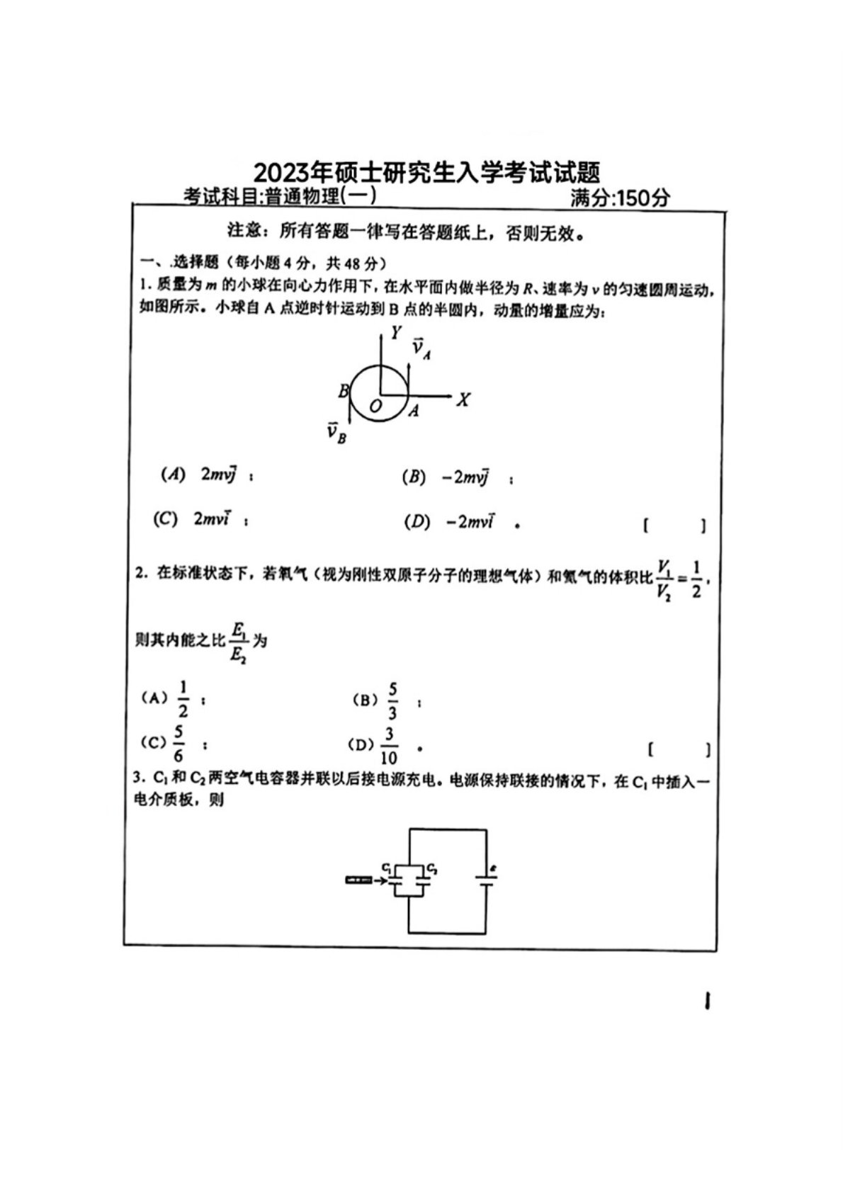 南方科技大学612普通物理2023年真题
