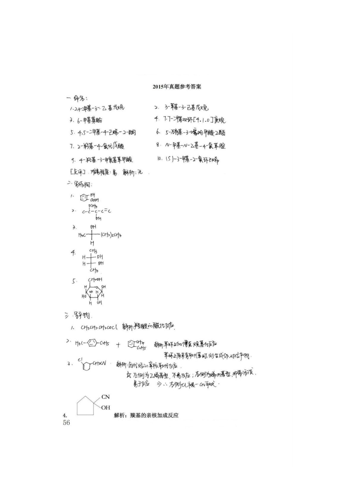 辽宁大学629有机化学2015年真题答案手写版