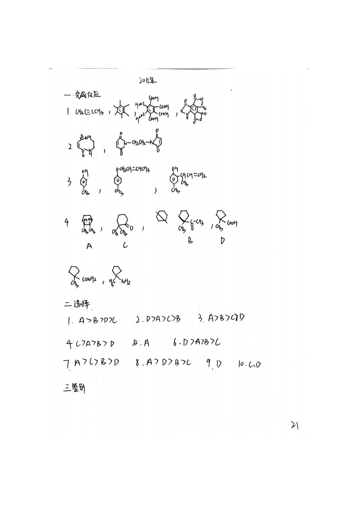 辽宁师范大学719有机化学2011年真题答案