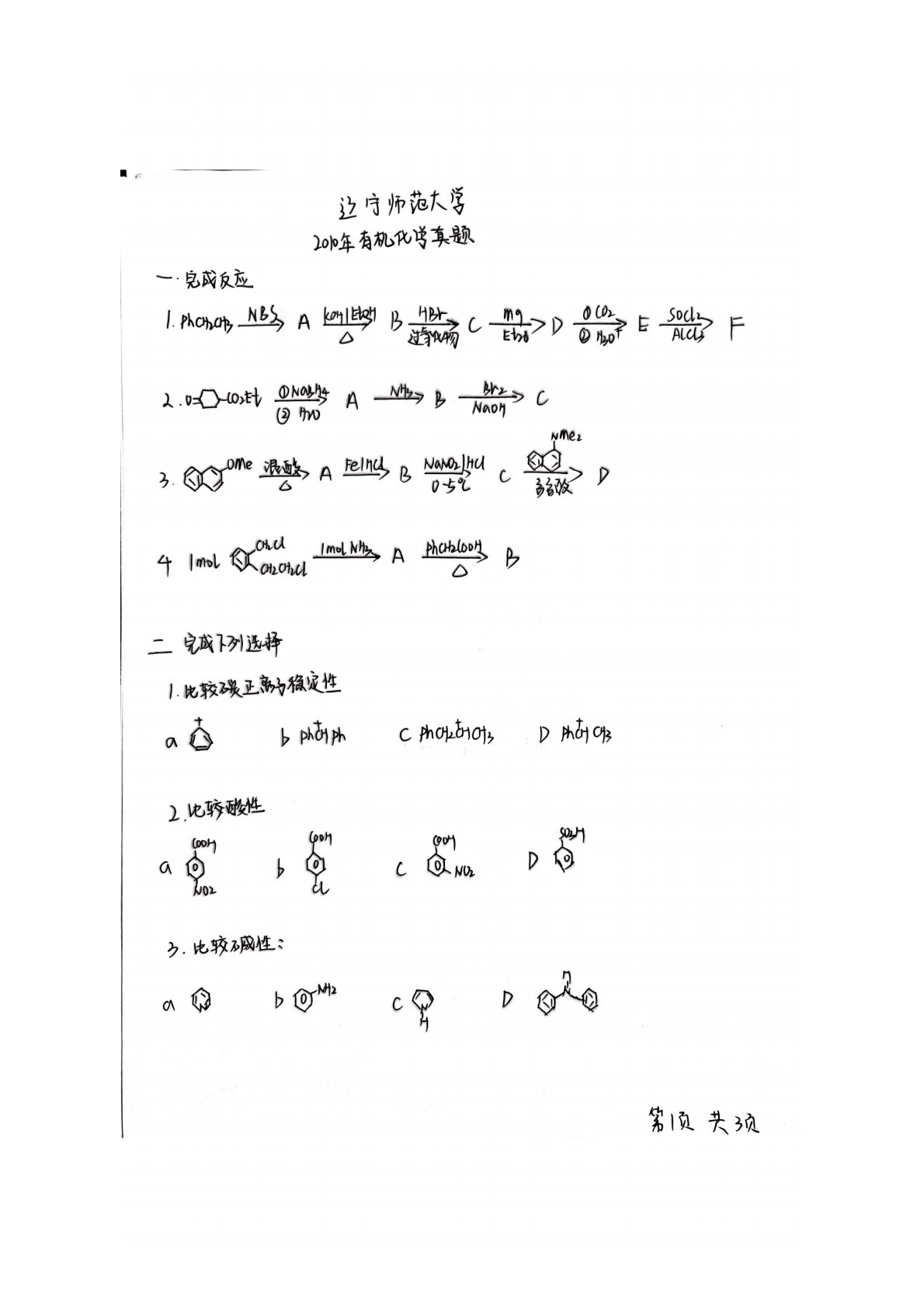 辽宁师范大学719有机化学2010年真题