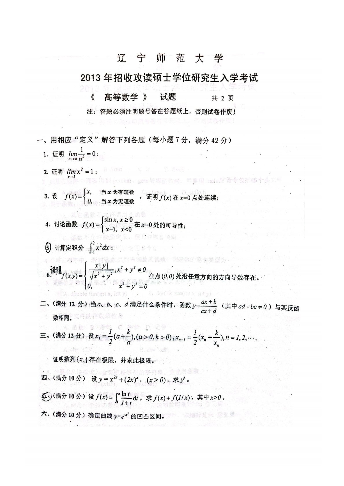 辽宁师范大学602高等数学2013年真题