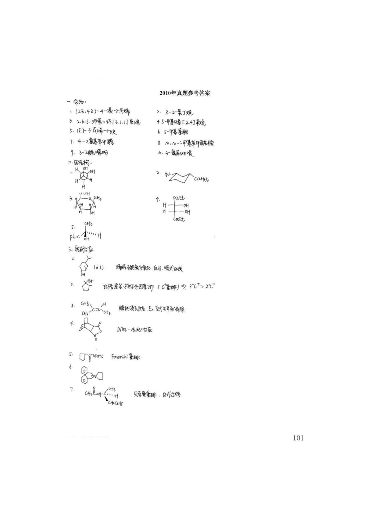 辽宁大学629有机化学2010年真题答案手写版