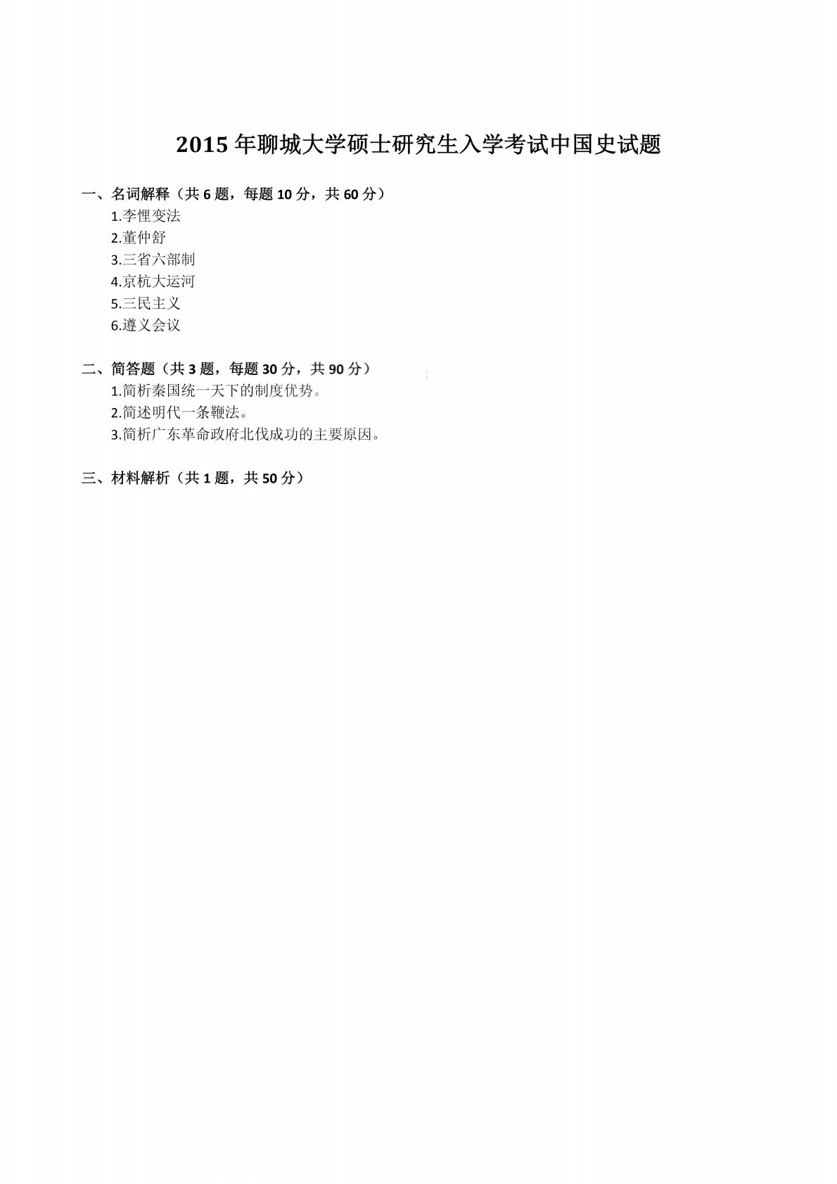 聊城大学618历史学基础(中国史)2015年真题