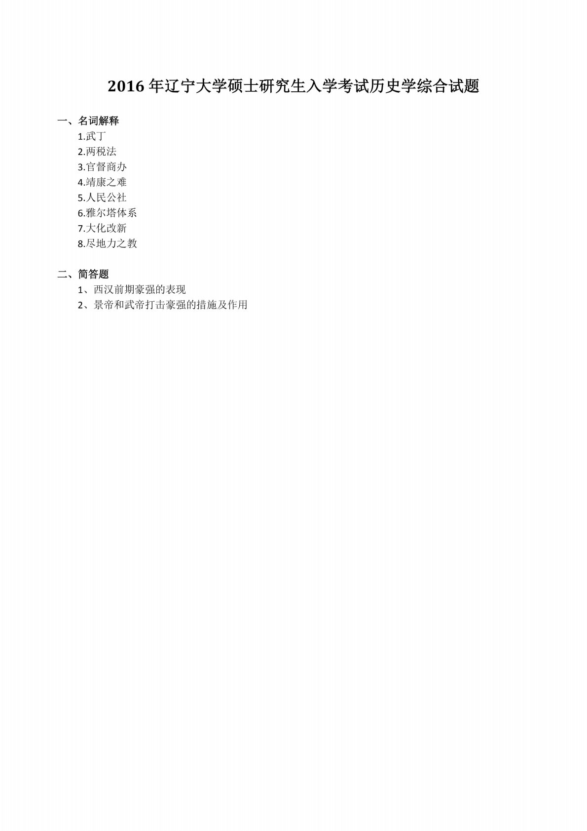 辽宁大学313历史学专业基础2016年考研真题
