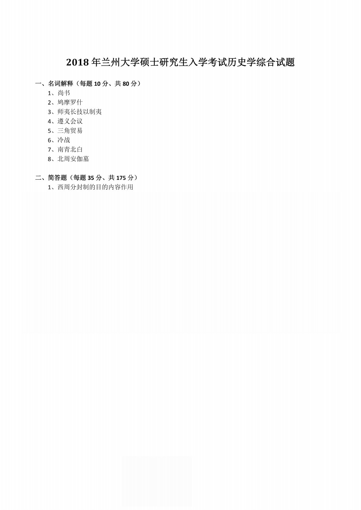兰州大学632历史学综合2018年考研真题