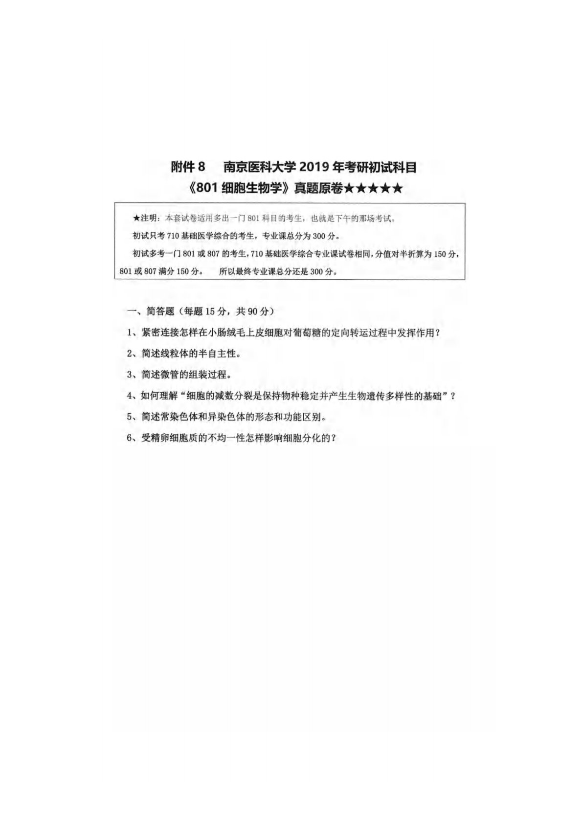 南京医科大学801细胞生物学2019年真题