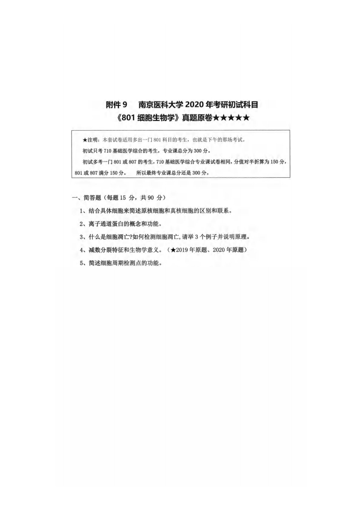 南京医科大学710基础医学综合2020年真题(细胞生物学)