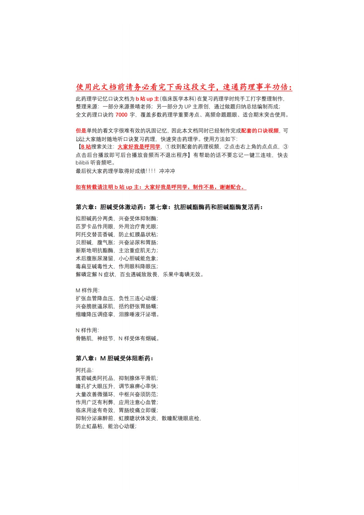 南京中医药大学350中药专业基础综合药理学速记口诀整理
