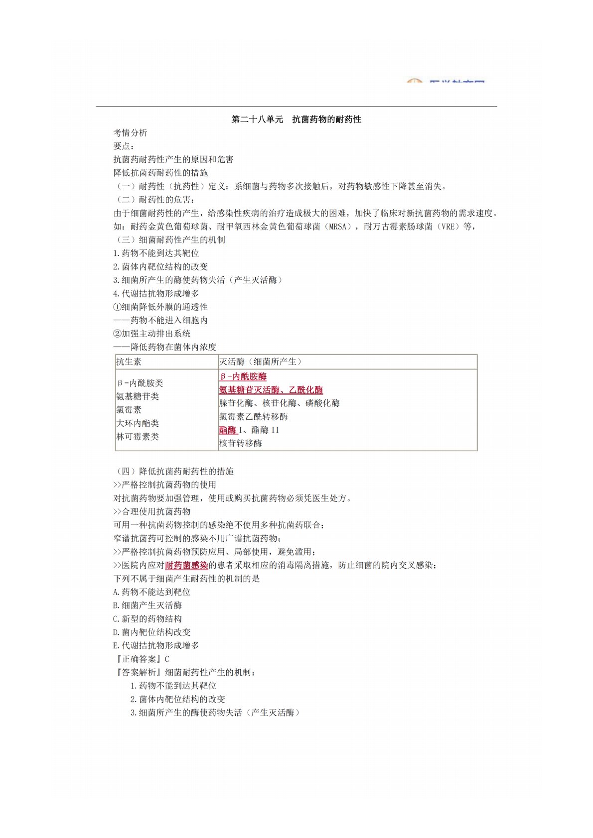 南京中医药大学350中药专业基础综合抗菌药耐药性