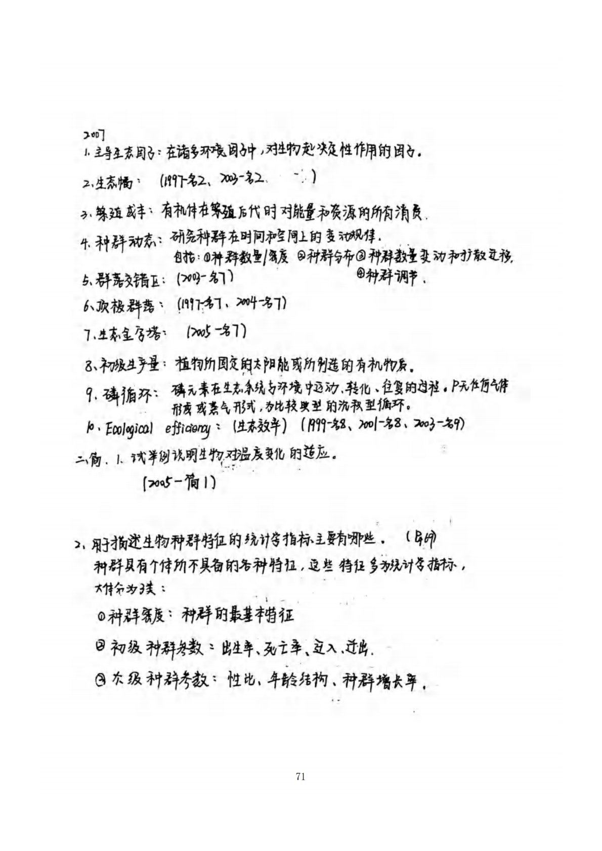 南京农业大学806普通生态学2007年真题答案手写版