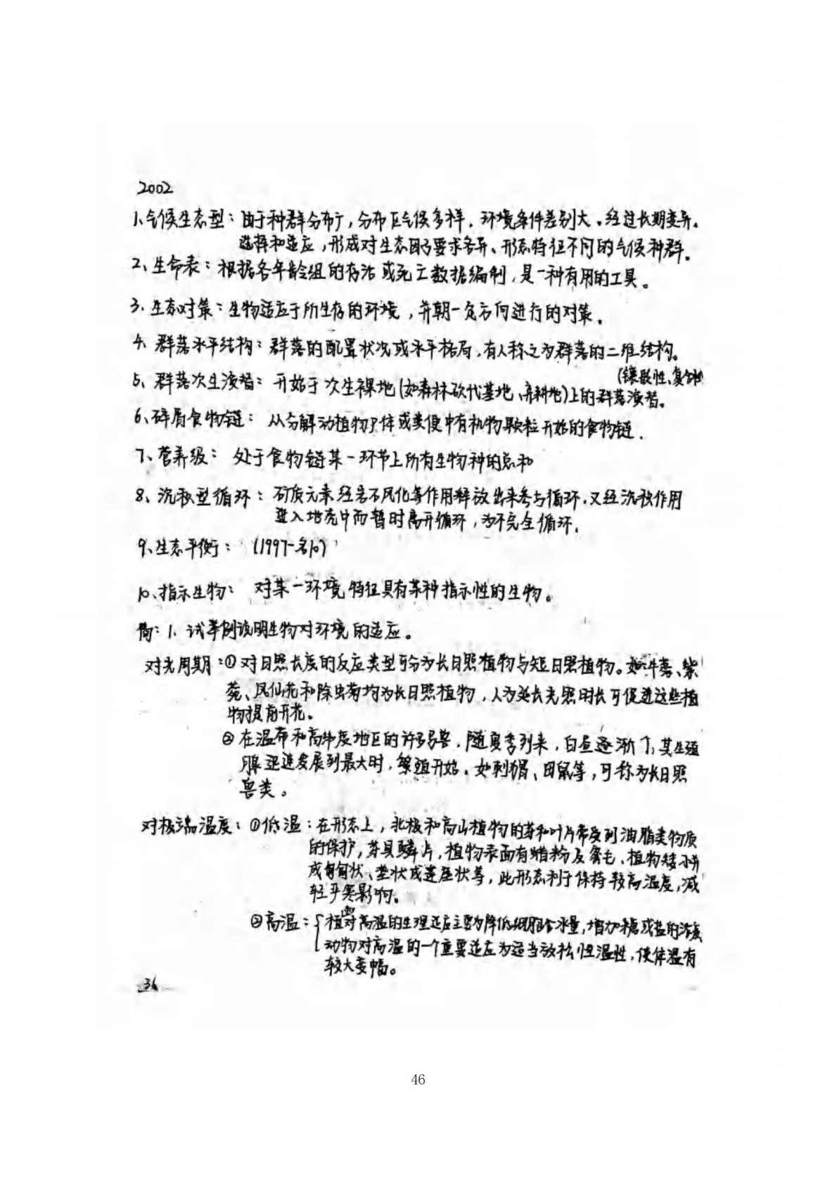 南京农业大学806普通生态学2002年真题答案手写版