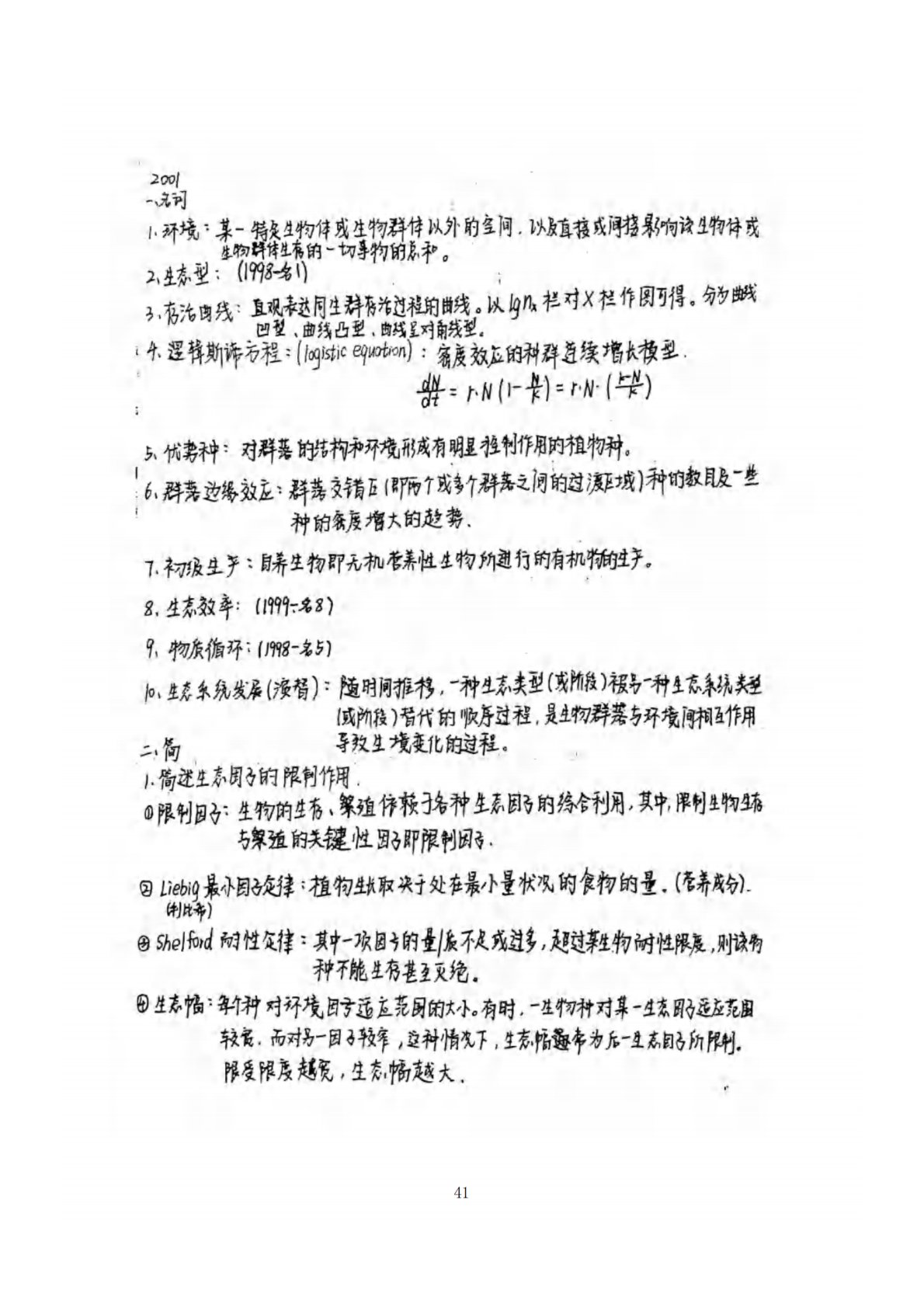南京农业大学806普通生态学2001年真题答案手写版