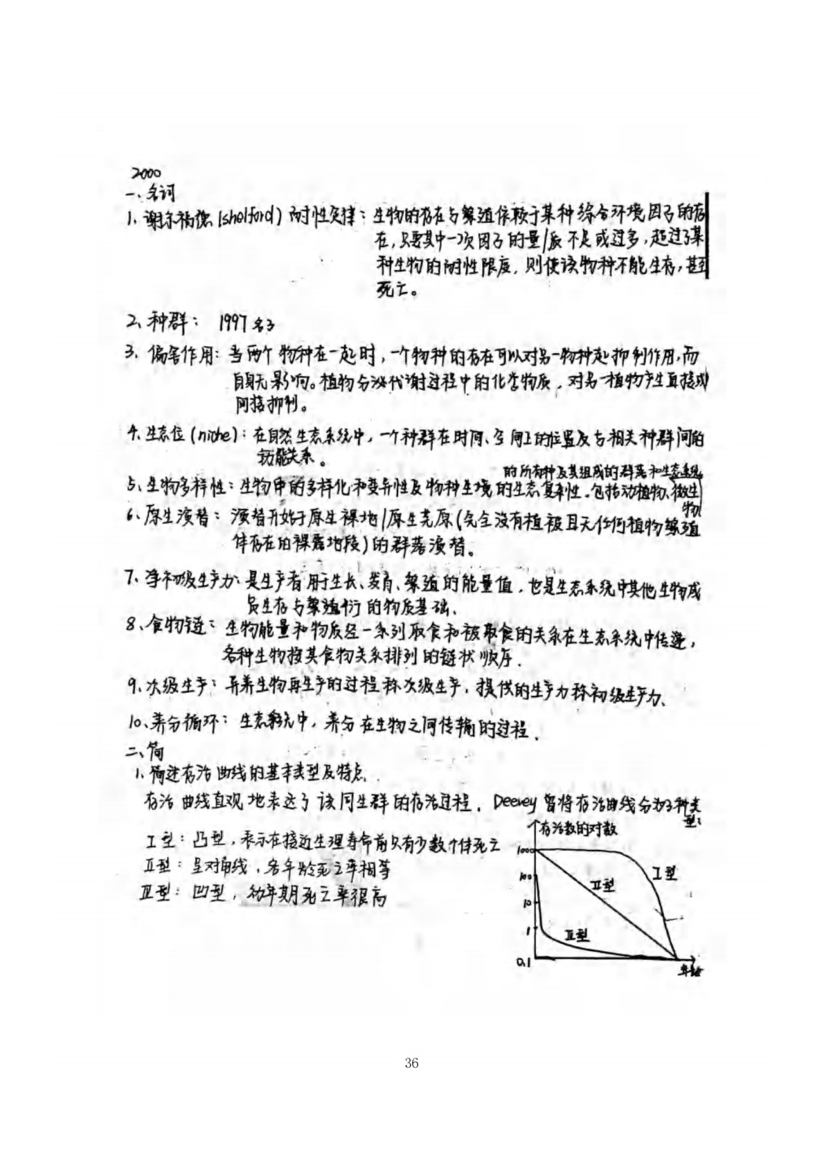 南京农业大学806普通生态学2000年真题答案手写版